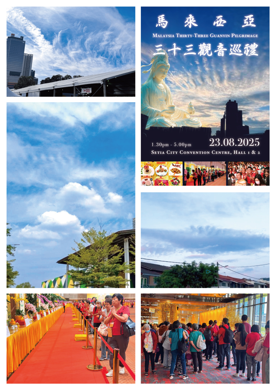 2025年8月23日,馬來西亞雪蘭莪州莎阿南隆重舉辦了第二屆「三十三觀音巡禮法會」。繼去年首度舉行後,今年再度吸引全國各地眾多信眾齊聚一堂,虔誠禮拜,將深厚的信仰與感恩之心奉獻於觀世音菩薩座前。當日會場莊嚴肅穆,參與者皆沉浸於慈悲聖光之中,共度神聖殊勝的時刻。