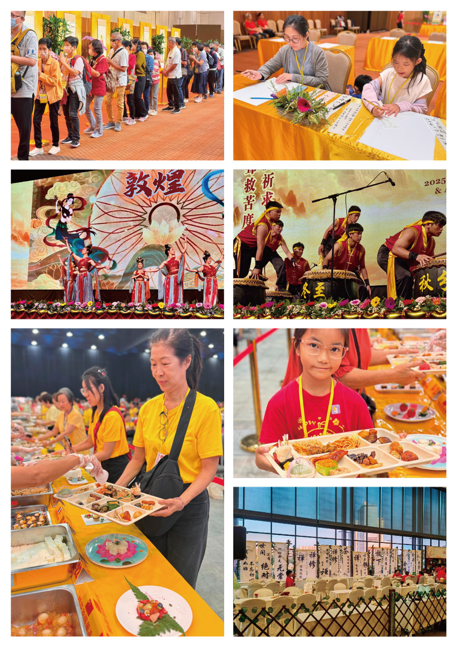 今年更增添了別具意義的新環節──為所有參拜者免費提供素食。這份承載健康與環保理念的齋食,廣獲歡喜與讚歎。透過飲食實踐慈悲精神,溫暖與善意在眾人之間流動,深化了法會「以慈悲濟世」的核心精神。